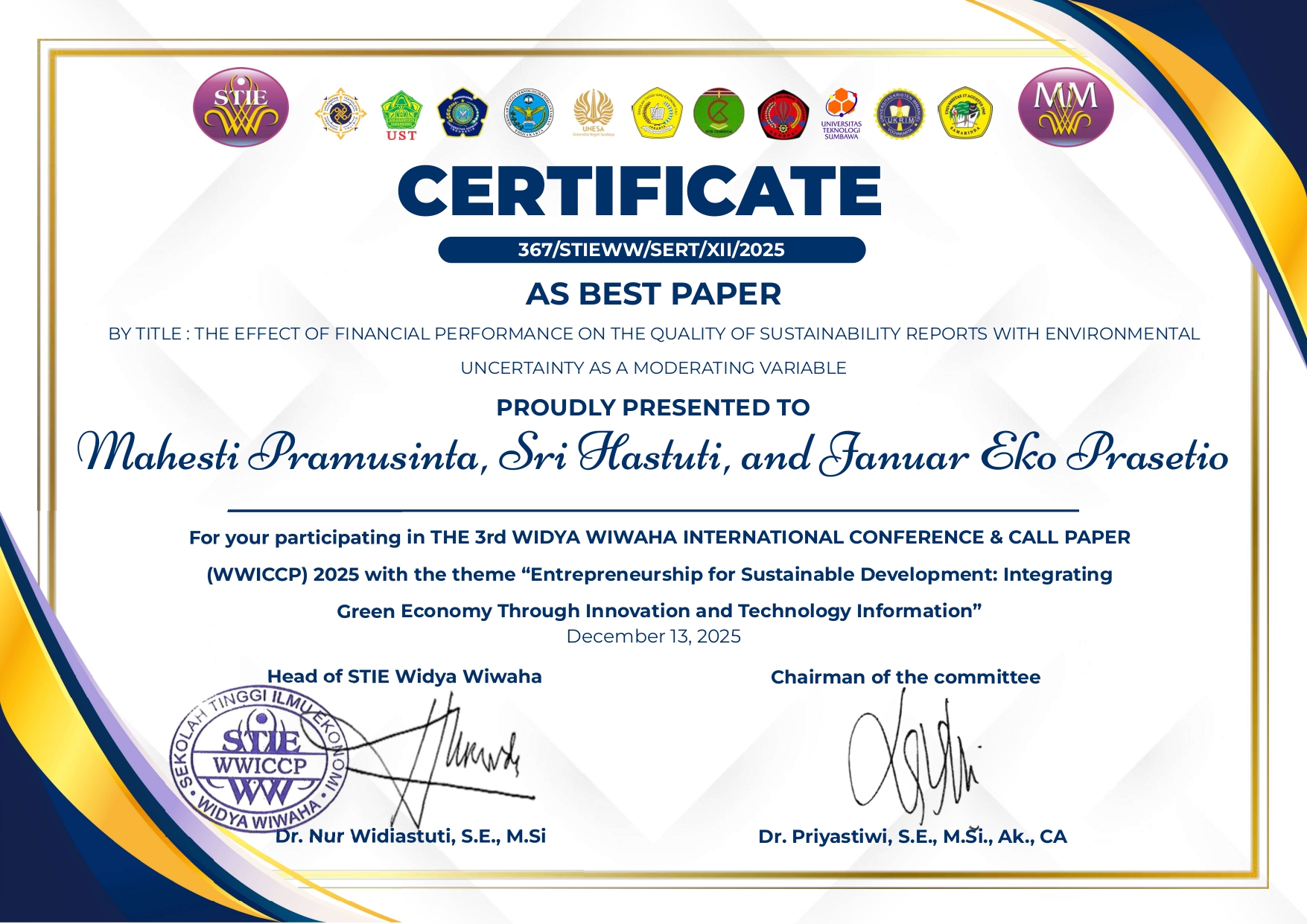The Best Paper a.n. Mahesti Pramusinta (S2 Akuntansi) dalam The 3rd Widya Wiwaha International Conference & Call Paper